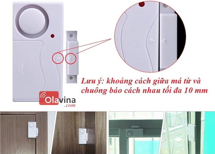- Khi mở cửa, còi báo sẽ tách xa khỏi má từ (Magnetic sensor) và tự động phát ra báo động.
