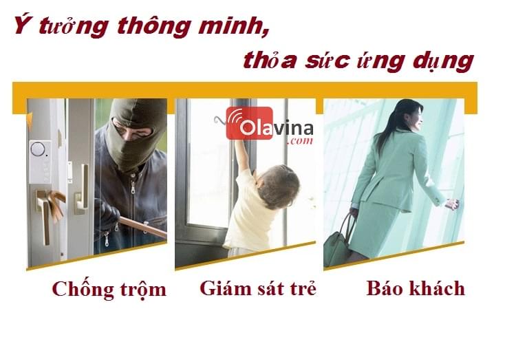 - Báo động mở cửa điều khiển từ xa V1, ứng dụng rộng dãi làm báo động chống trộm tại chỗ cho gia đình, cửa hàng, siêu thị, văn phòng ... giám sát trẻ em trốn khỏi nhà ... làm chuông cửa không dây, chuông báo khách ...
