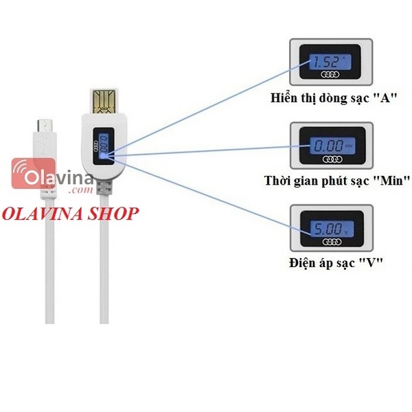 Cáp sạc điện thoại thông minh, tự động hiển thị điện áp, dòng sạc, thời gian sạc, dễ dàng sử dụng. Cho bạn biết thông tin, tình trạng sạc trong nháy mắt.