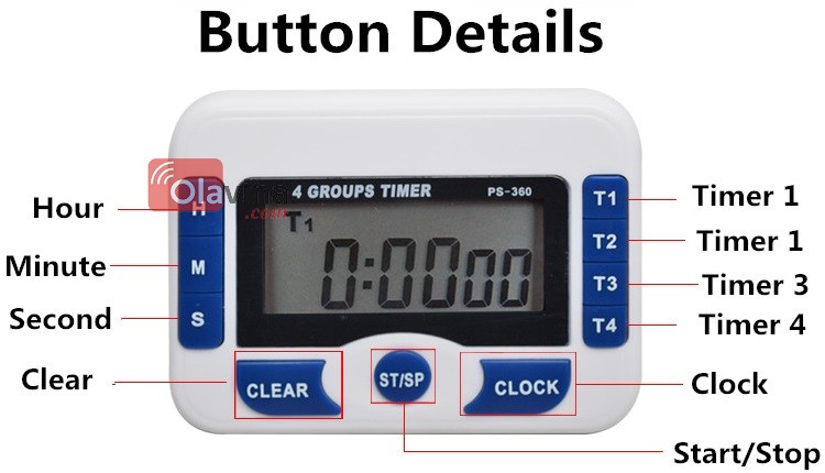 Vừa sử dụng như một chiếc đồng hồ xem giờ, vừa có thể hẹn giờ đếm ngược với 4 kênh cùng lúc hoặc hẹn từng kênh độc lập (với 4 âm báo khác nhau cho từng kênh dễ dàng phân biệt).