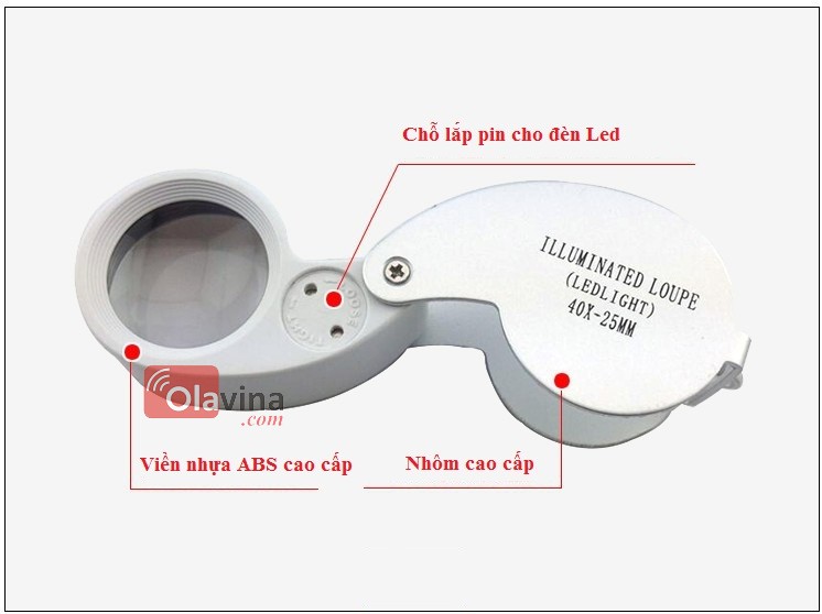 Chiếc kính lúp có độ phóng đại 40 lần cùng với sự trợ giúp của đèn led ngọc tích hợp có thể nhìn rõ nét chi tiết của vật thể. Ứng dụng kiểm tra tiền giả, kiểm tra tranh cổ, đá quý, kim cương...