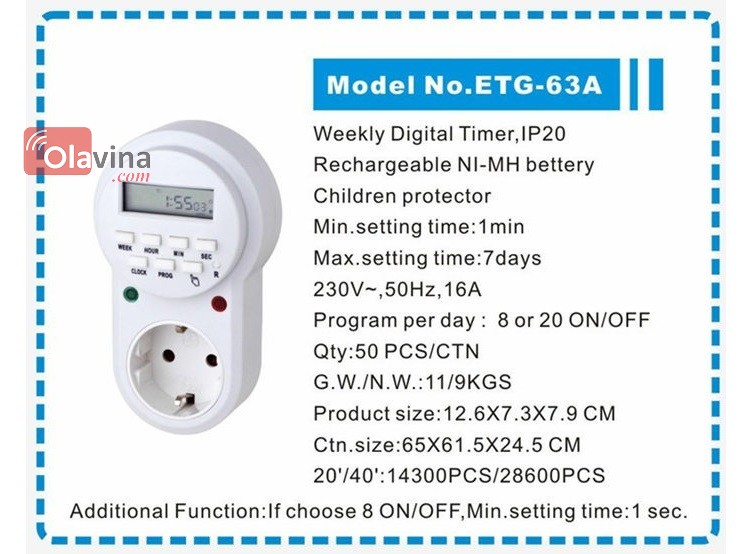 - Cài đặt cho ổ cắm điện hẹn giờ SG36 ( ETG-63A )