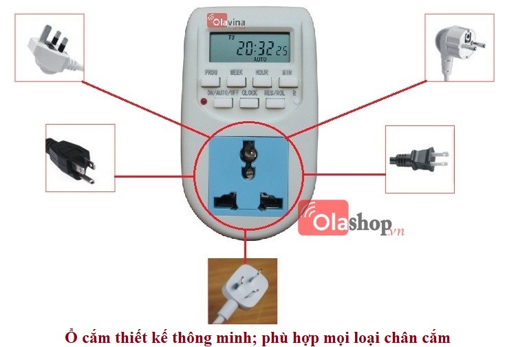 Ổ cắm hẹn giờ điện tử AL-06 thiết kế thông minh, phù hợp mọi loại chân cắm trên thị trường.