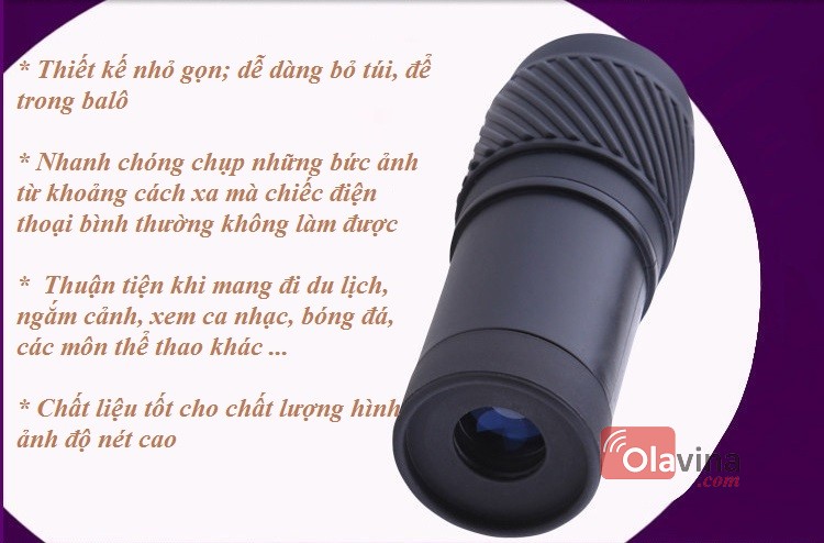 - Hoặc có thể sử dụng như một chiếc ống nhòm du lịch mini thuận tiện cho các buổi xem ca nhạc, thể thao, bóng đá, ngắm cảnh từ xa ... mọi vật sẽ trở lên gần với bạn hơn, cho tầm nhìn xa rõ nét;