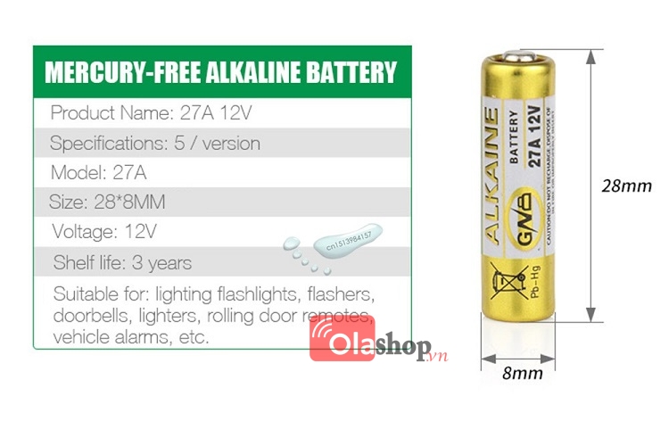🔋 Pin Alkaline 27A 12V tuổi thọ pin cao, hao hụt tự nhiên cực thấp, vật liệu thân thiện với môi trường.